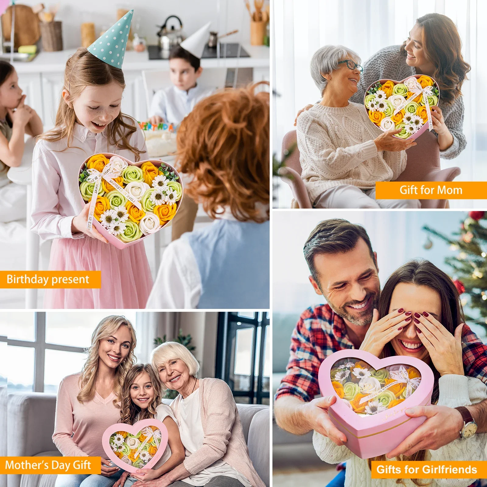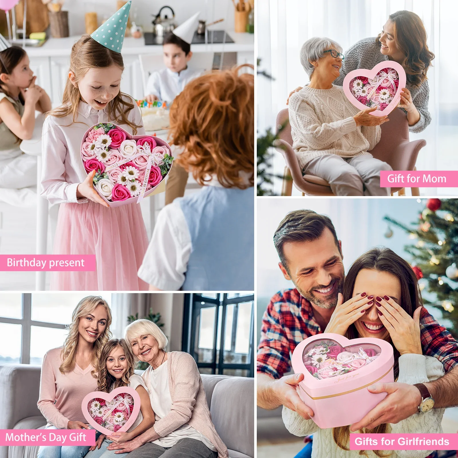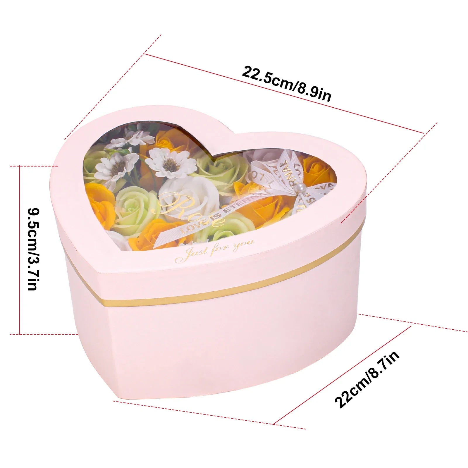 - Floral Style: Heart-shaped pink soap flowers with a fresh-flower scent